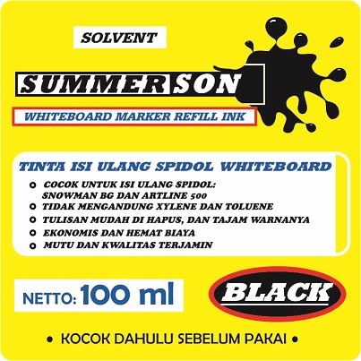 Akhir kata , sebelum membeli tinta isi ulang spidol whiteboard, perhatikan dan baca dengan jelas keterangan yang tertera di label tinta refill spidol whiteboard nya. Pastikan untuk selalu menggunakan tipe tinta refill spidol whiteboard yang cocok dengan tipe spidol yang anda pakai. Tinta refill spidol whiteboard yang berkualitas (SUMMERSON dan KAYATA) akan selalu mencantumkan tipe spidol yang cocok untuk pemakaian nya.