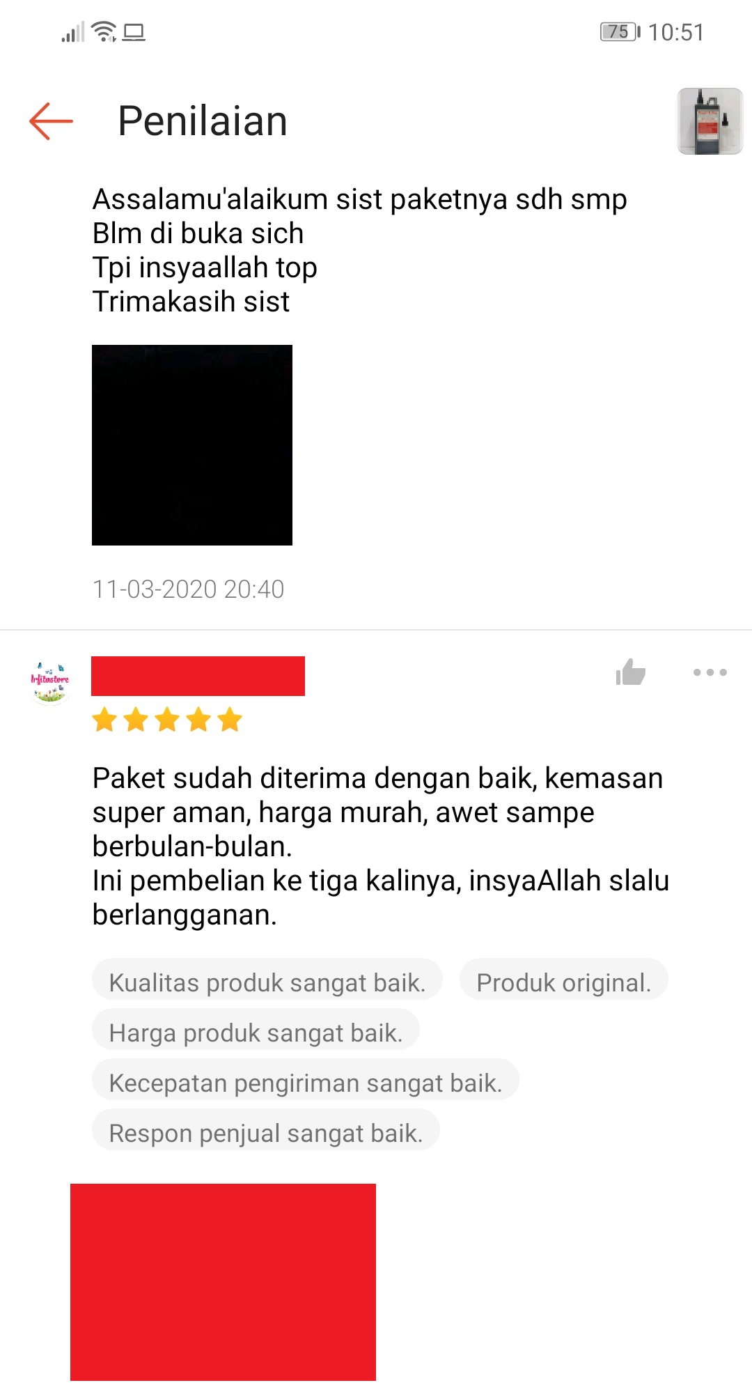 Untuk melindungi privasi customer, nama dan nomer HP customer tidak kami tampilkan.
